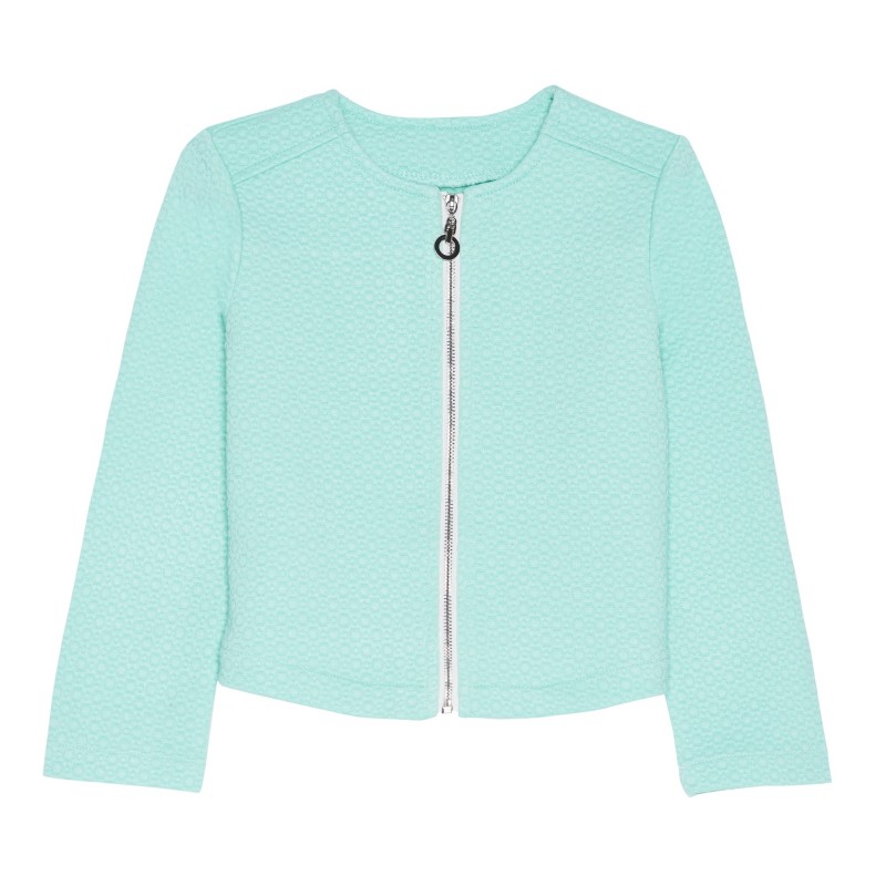 This super cool textured milano jersey cardigan with long sleeves, crew neck and zipper is the perfect addition to her summer look. (wear with the La une dress)