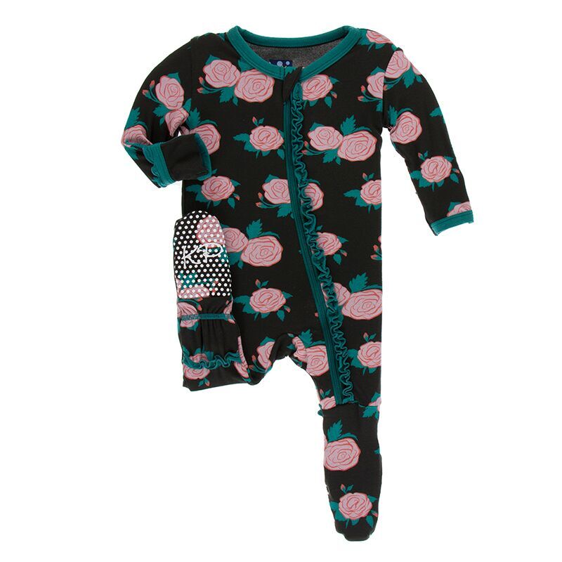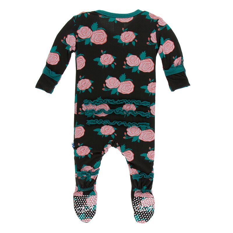 Print Muffin Ruffle Footie with Zipper in English Rose Garden