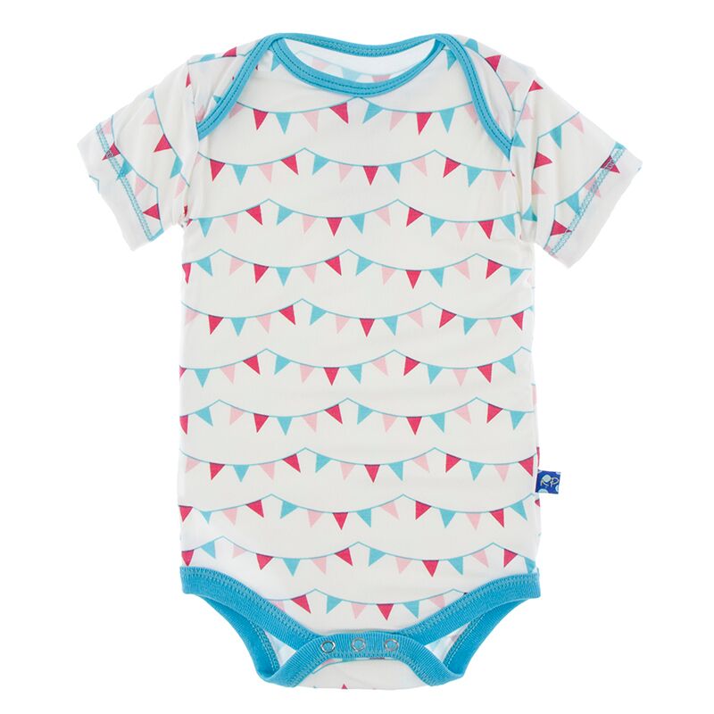 Print Short Sleeve One Piece in Flamingo Party Flags