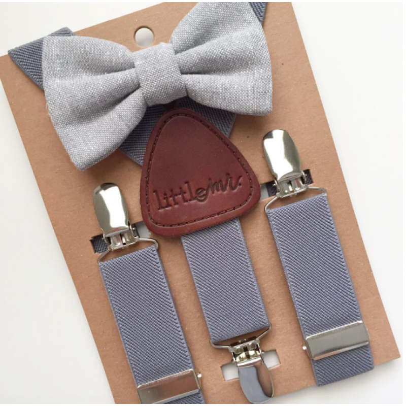 Little Mr. GRAY SUSPENDERS W/GRAY BOW TIE