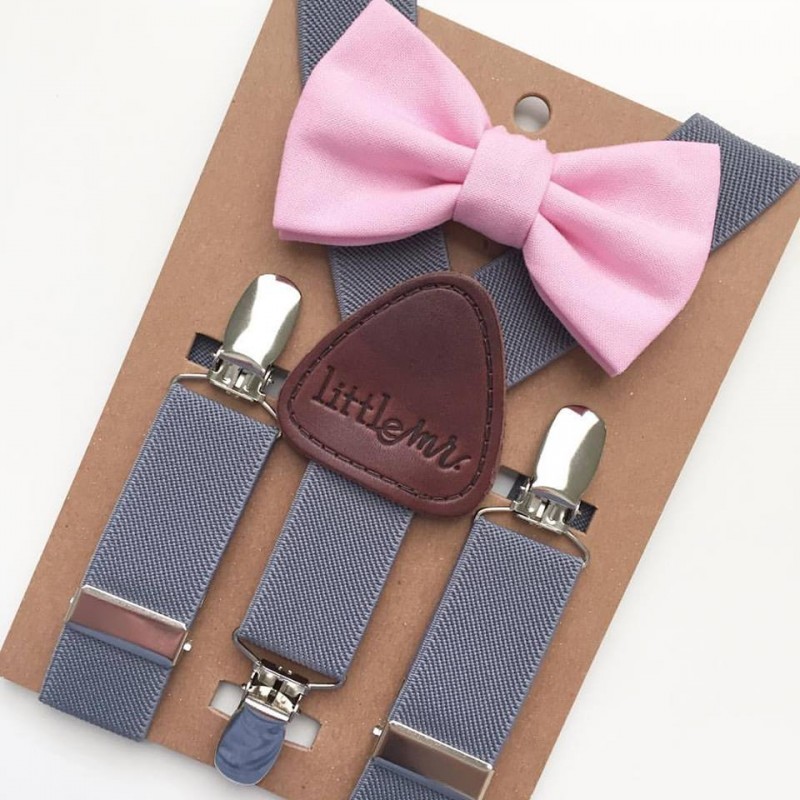 Little Mr. GRAY SUSPENDERS W/PINK BOW TIE