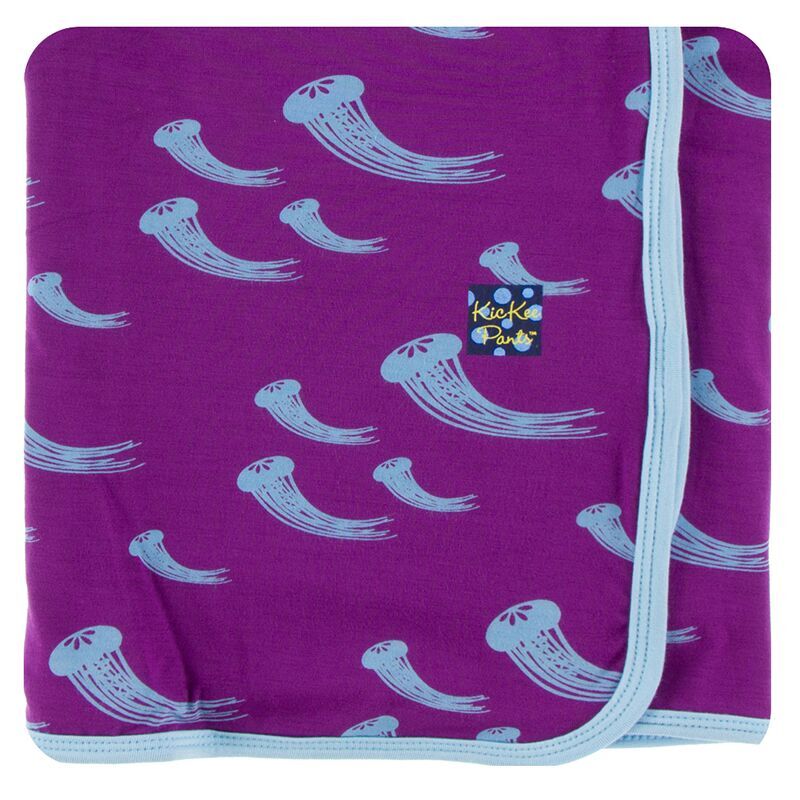 Wrap your little lamb in the sweet softness of our swaddling blanket by Kickee Pants after a bath or at bedtime. The stretchy fabric will make baby feel like she’s soaring off to sleep on her own personal cloud. Pair with one of our sweet layette sets or a cozy zippered Footie for a perfect shower gift.
