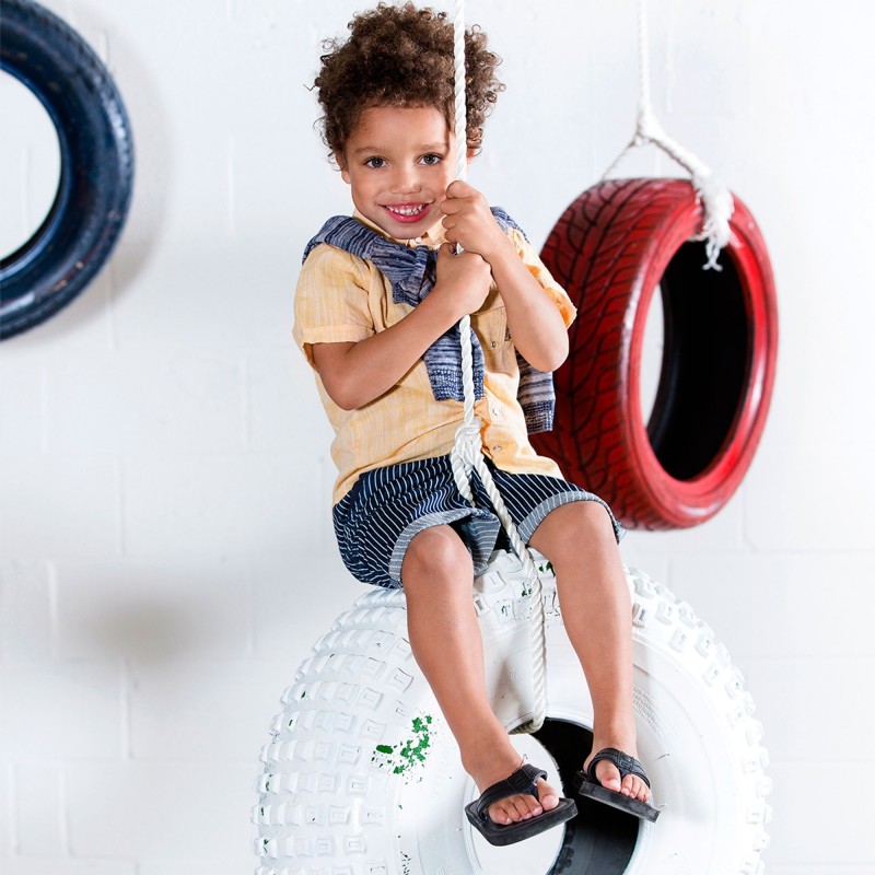 Short sleeve slub cotton shirt. Snap buttons and front pocket with flap. ..