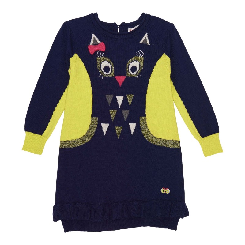 This knit dress with intarsia owl design on the front by Deux Par Deux will look so cute on her this winter. Pair with Deux Par Deux tights or leggings.