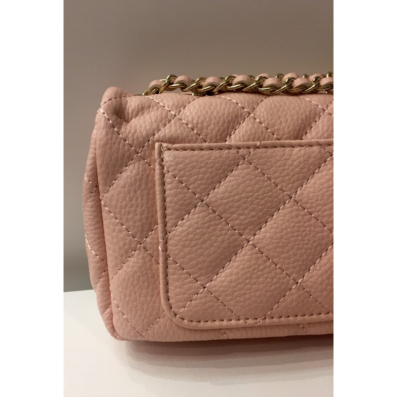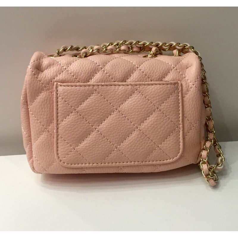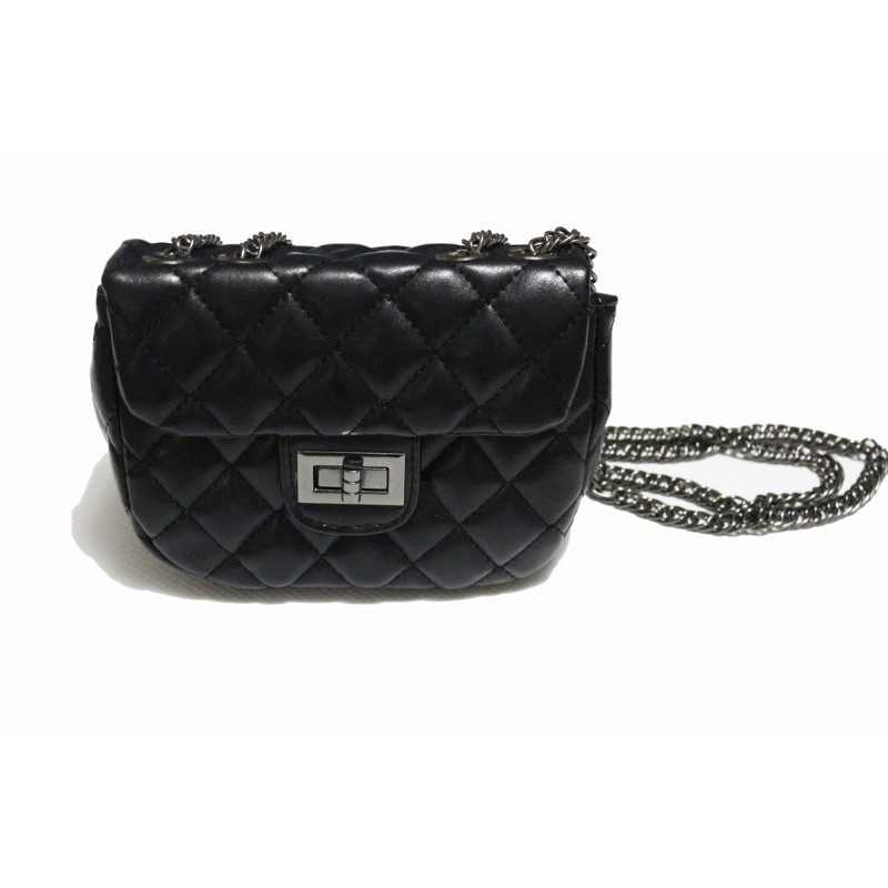 She'll love this stylish trendy quilted nappa shoulder bag with flap top and turn-lock closure, dark tone hardware, convenient exterior back pocket and interior zippered pocket - just perfect for her personal items. Strap is adjustable and can be worn as double or single strap for more length. Very accommodating for various age/size girls. Made with faux leather. Measurements: 6"H x 8"W x 3"D