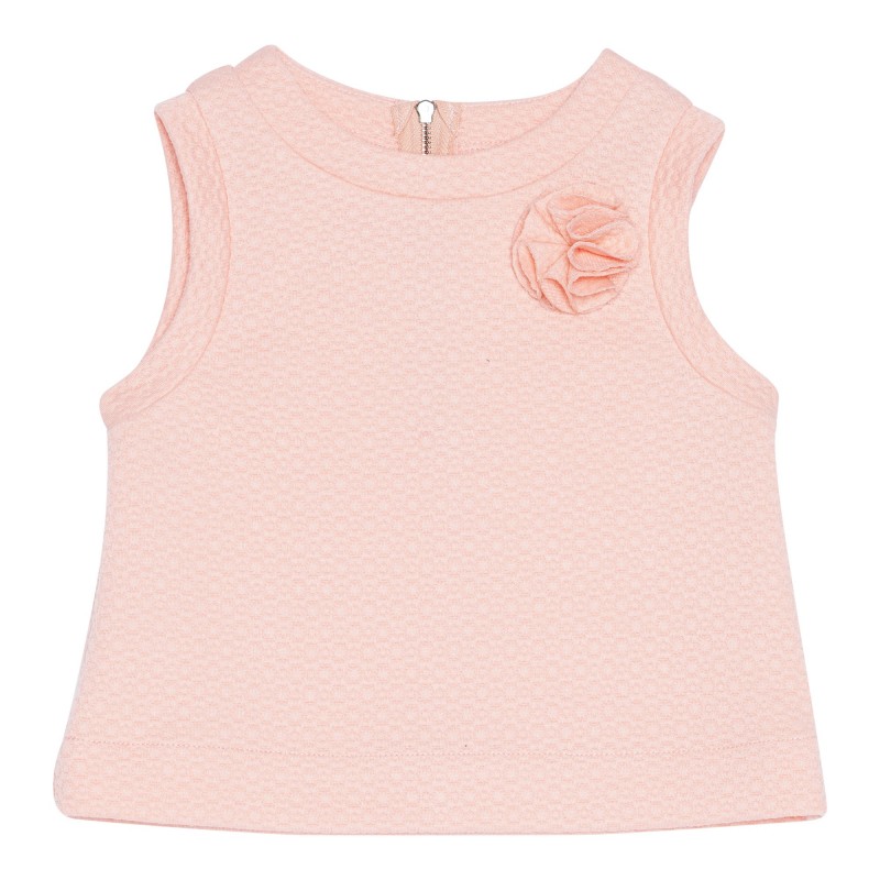 This Textured milano sleeveless top. Crew neck, zipper at the back. & Flower applique on the chest. (Pair with the textured shorts) is the Pefect outfit for your little fashionista.
