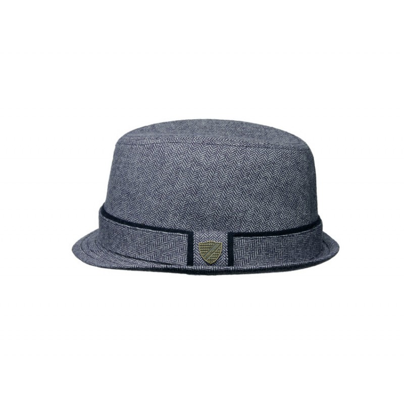 Herringbone Fedora with Navy Corduroy Piping. Wool/Polyester/Rayon. Import