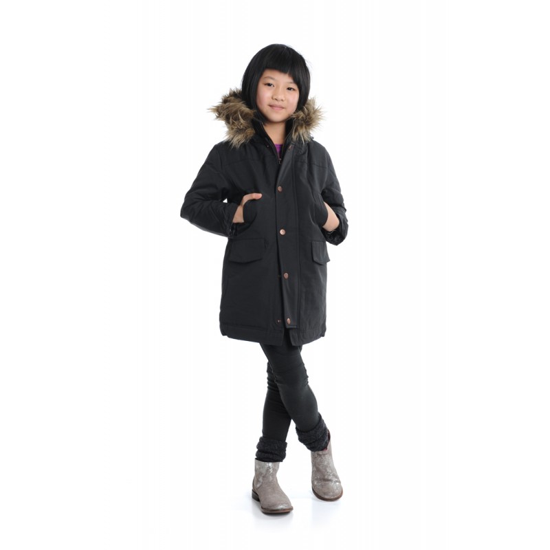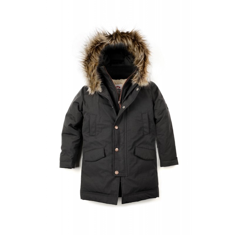 Our Parka is sure to stand up to the polar vortex! Long in length, snap closure with zippered double layer underneath for added warmth and wind blocking. Upper interior has sherpa lining and lower half is quilted. Removable faux fur trim hood. Duck down fill.
