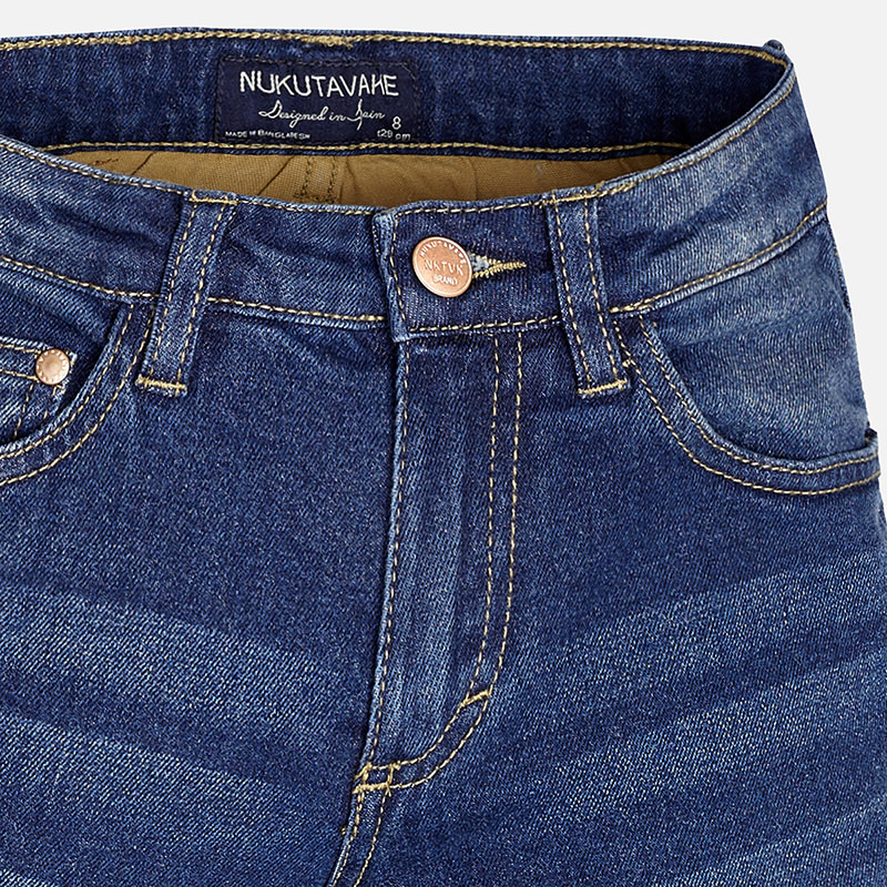 Boys stretch denim jeans by Mayoral. These slim fit jeans are faded and distressed, with an adjustab..