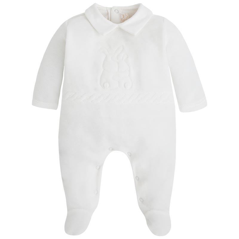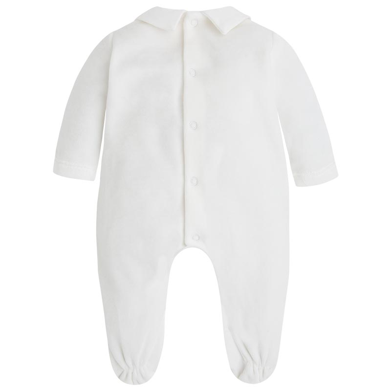 The white shear fabric adn Embroidery with appliqué on the front make this piece appropriate for both boy or girl.